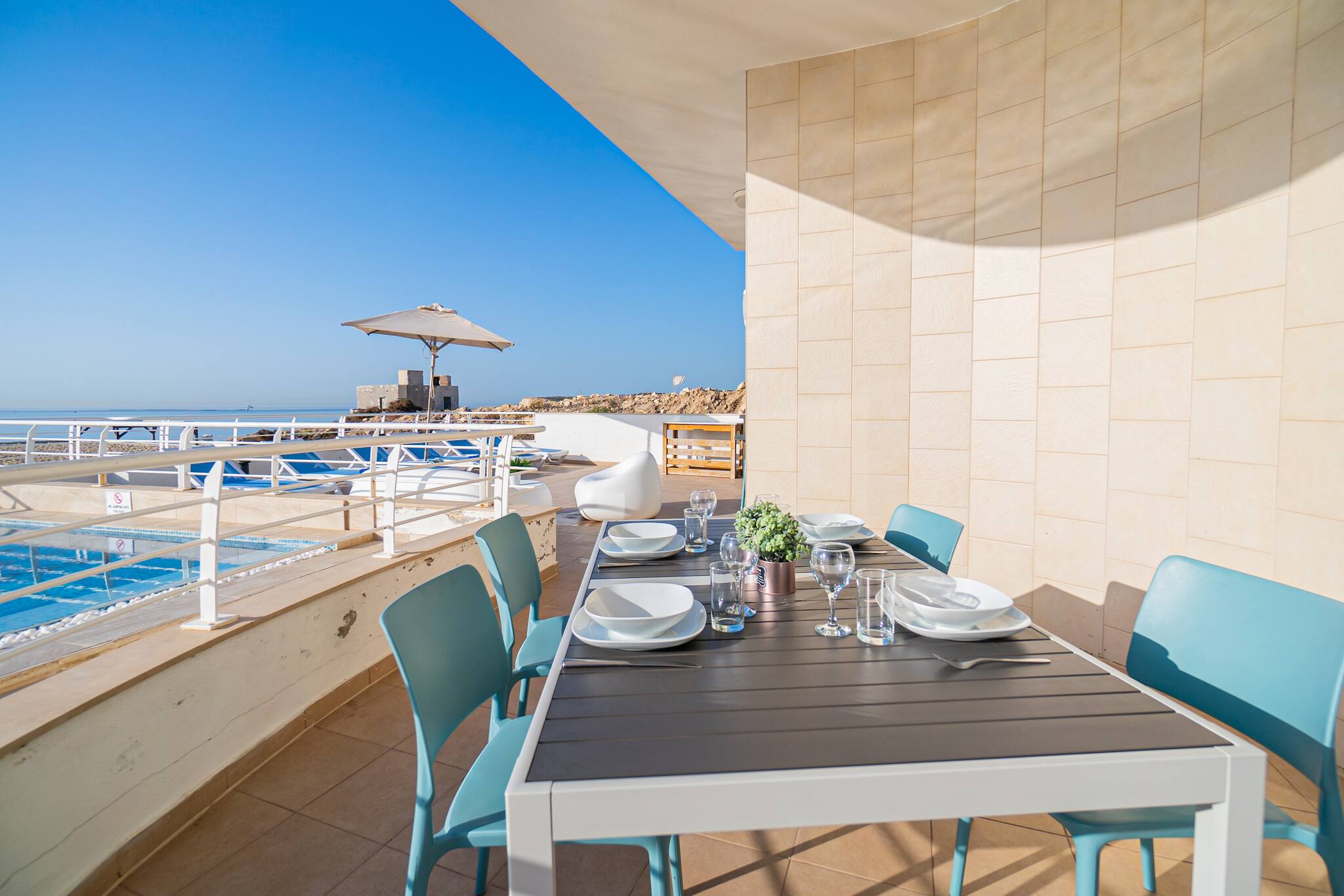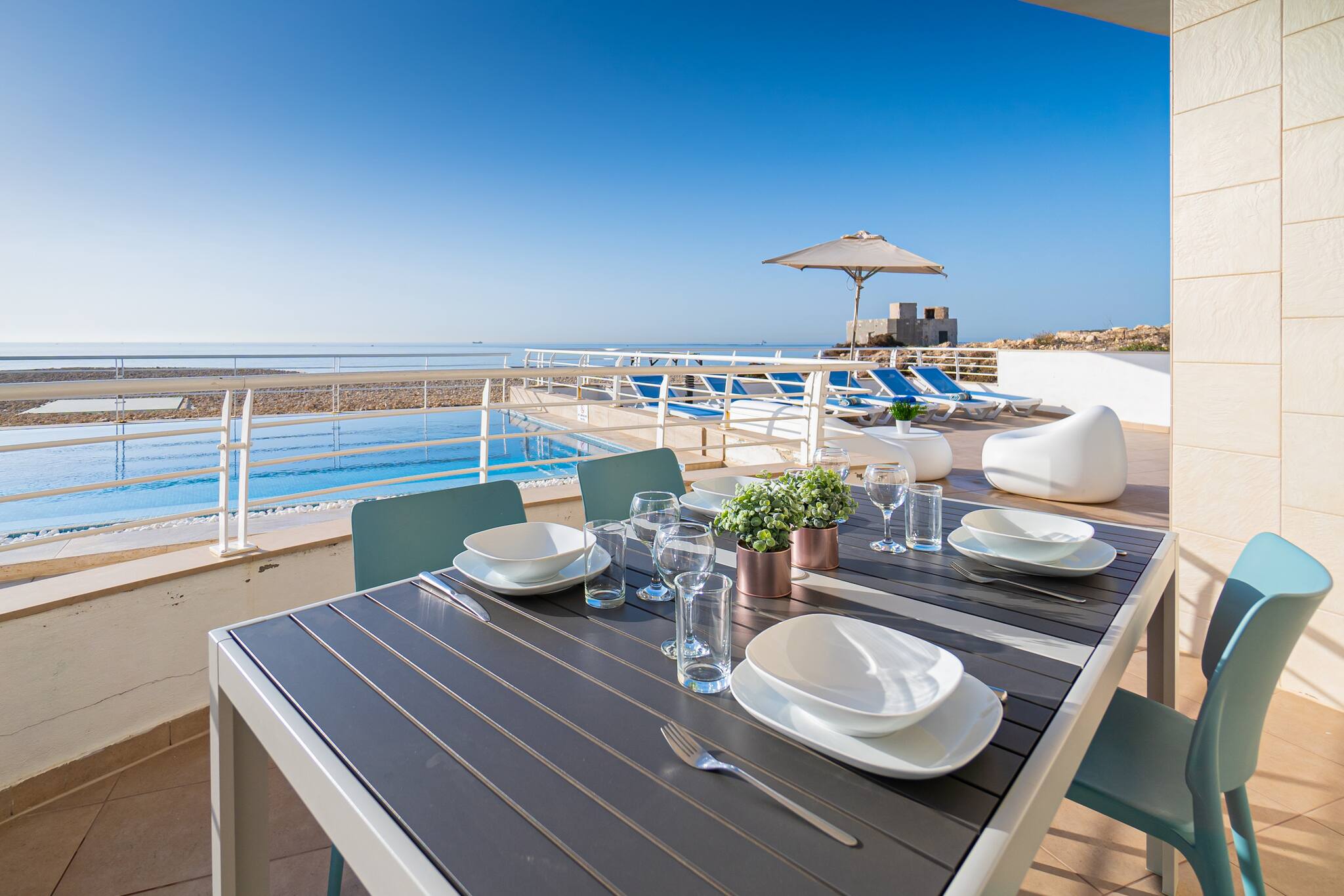 A charming 3 bedroom apartment facing the tranquil & stunning coast of Marsaskala with breath-taking views of the Mediterranean sea. The property is ideal for families or friends who are in search of a beautiful holiday home away from the hustle & bustle of the city. Situated in a quiet, relaxed & friendly neighbourhood, only a few minutes away from all the daily amenities such as pharmacy, green grocer and small convenience store.