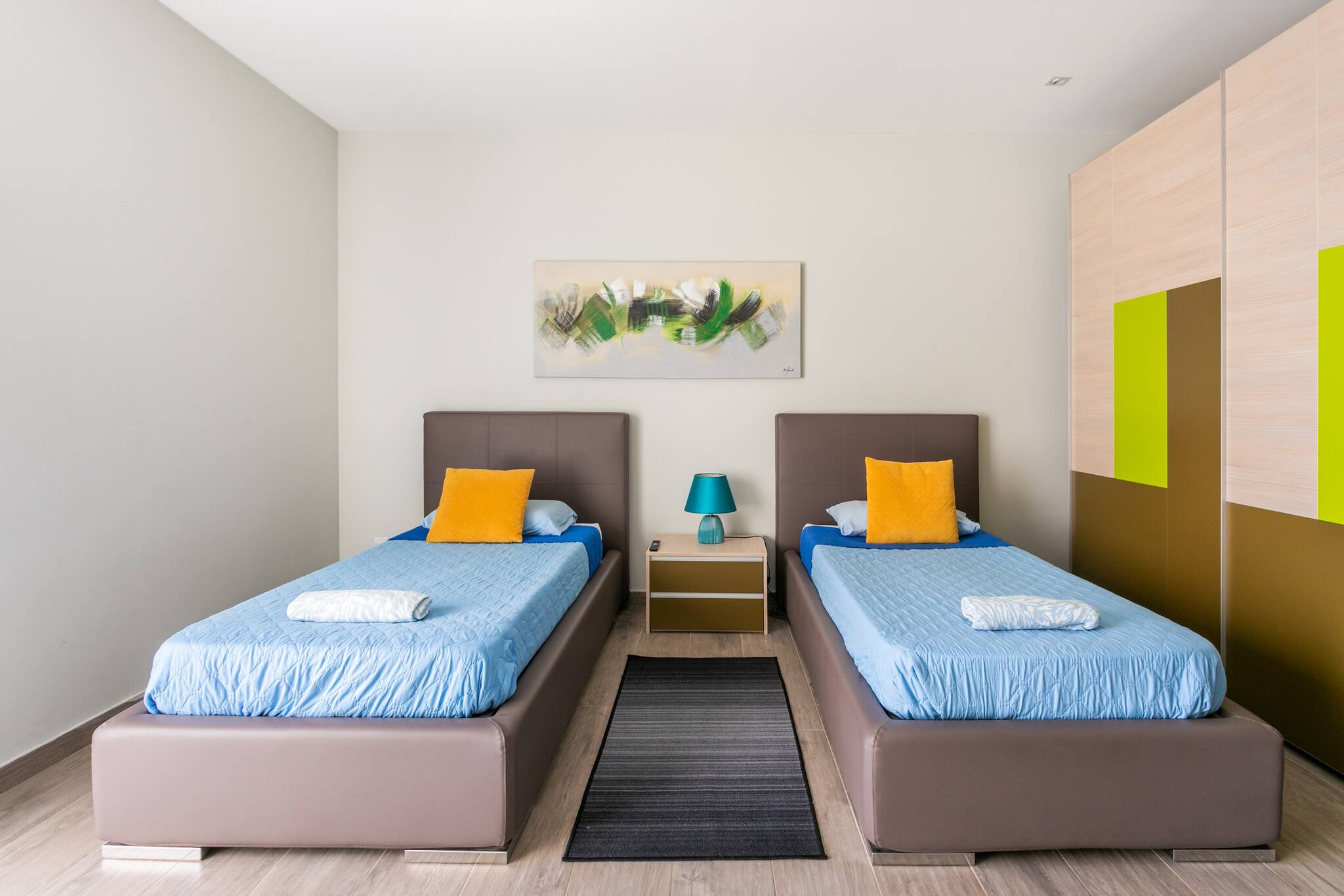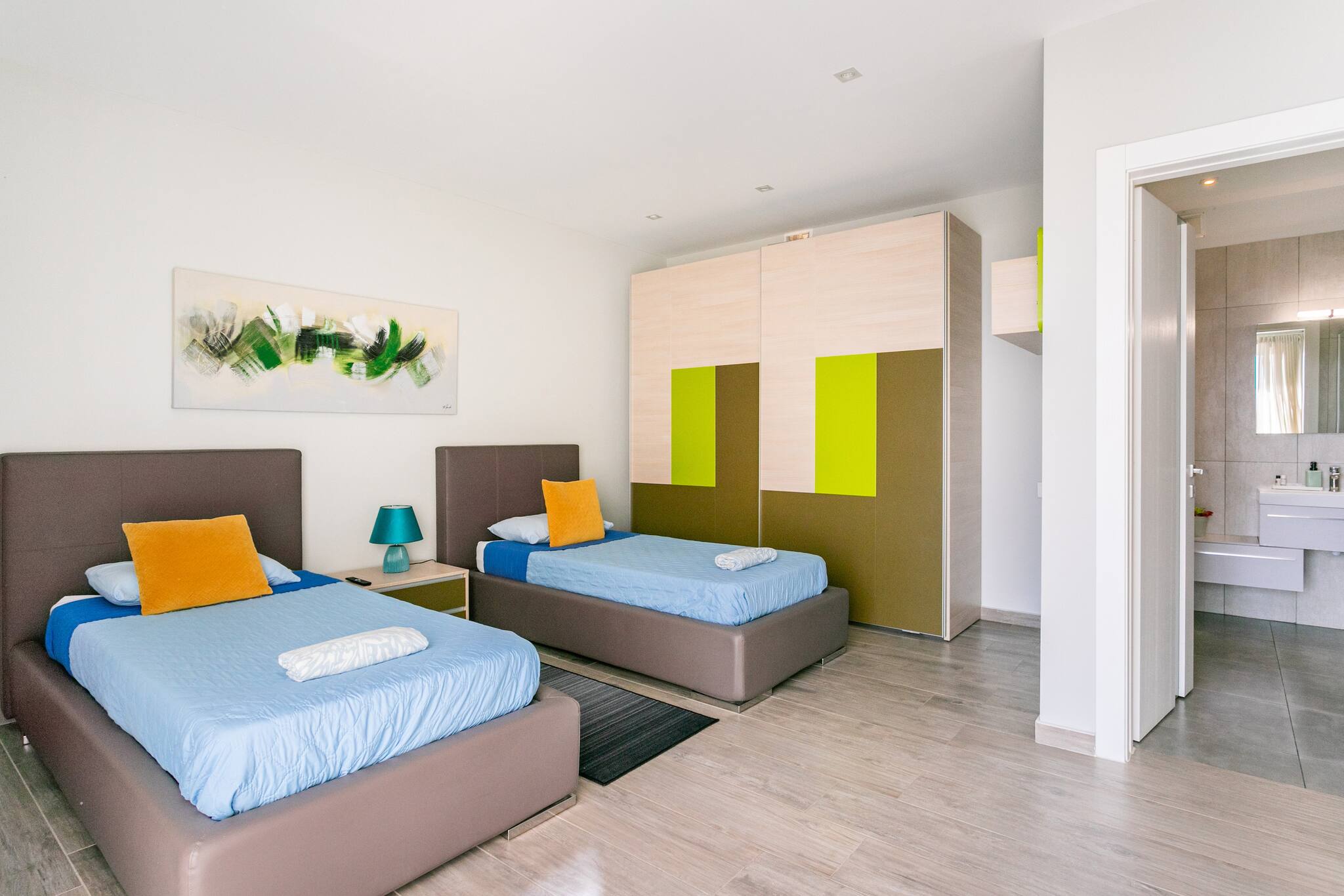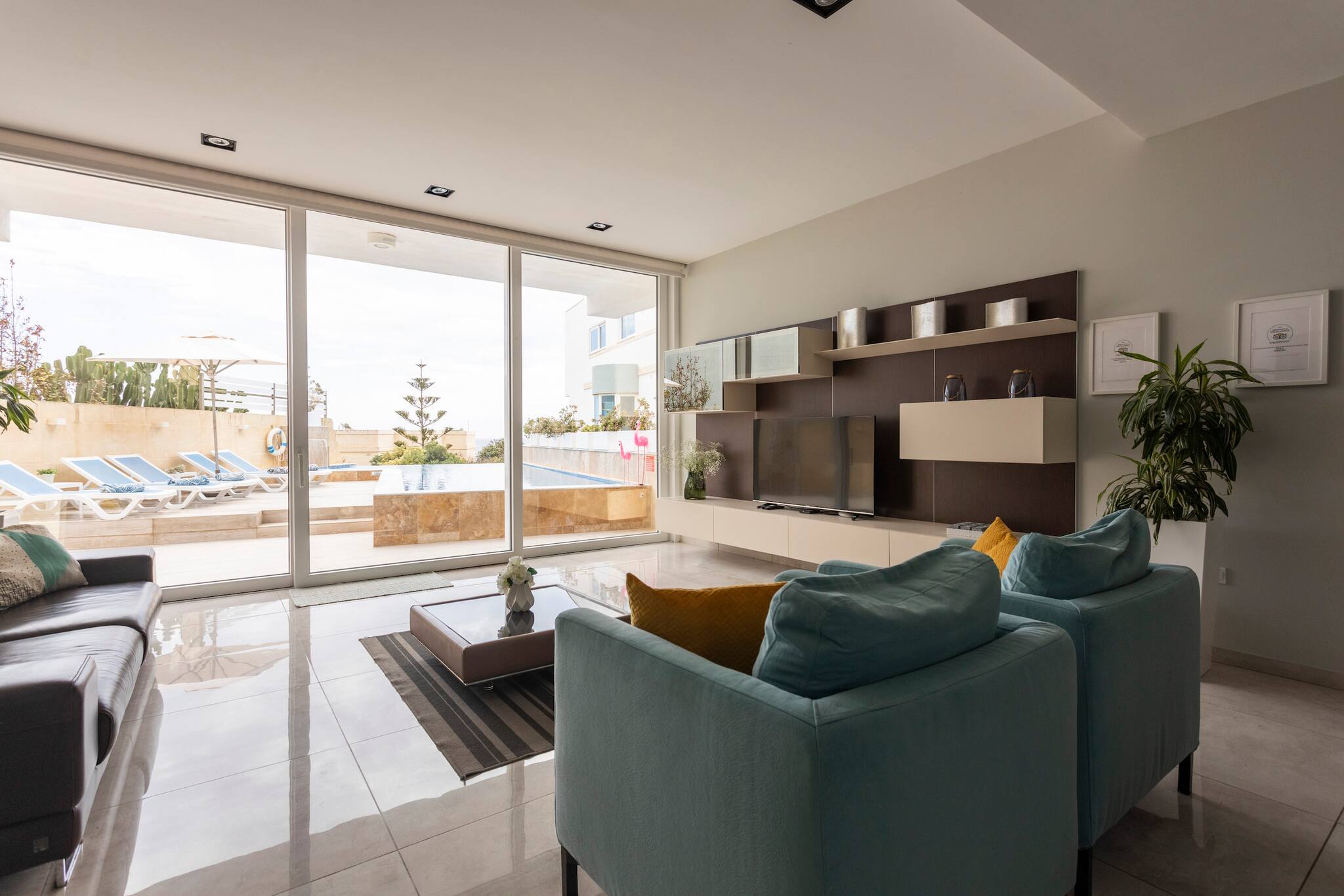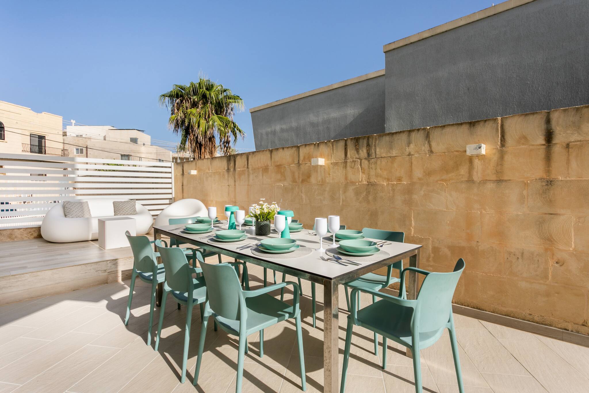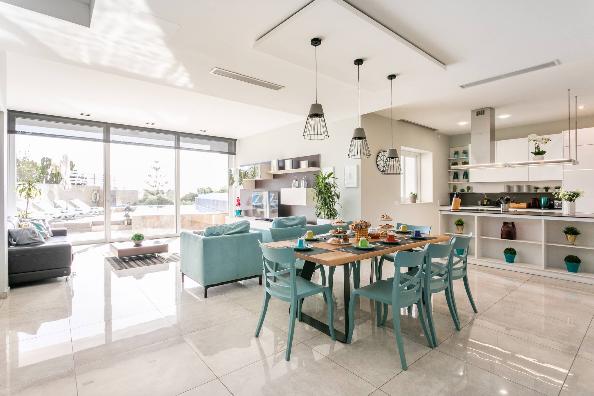 The villa is set apart from the hustle and bustle of the city life, nestled just in from of the sea. It is located just 30 minutes away on foot to the center of Marsaskala. Here one finds a delightful natural harbor onto which a number of bars and restaurants are situated facing the promenade. Less than 15 minutes away by car there is the historical town of Vittoriosa. In summer one may take the ferry from the Vittoriosa waterfront to Valletta. For the more adventurous there is also another ferry from Valletta to Sliema. The neighboring towns of Birzebbugia and Marsaxlokk are also worth a visit, these are 15 minutes away by car. Marsaxlokk is a fishing village, with several restaurants. A market is set up every Sunday on the promenade where one finds all sorts of things, from fresh fish to souvenirs!