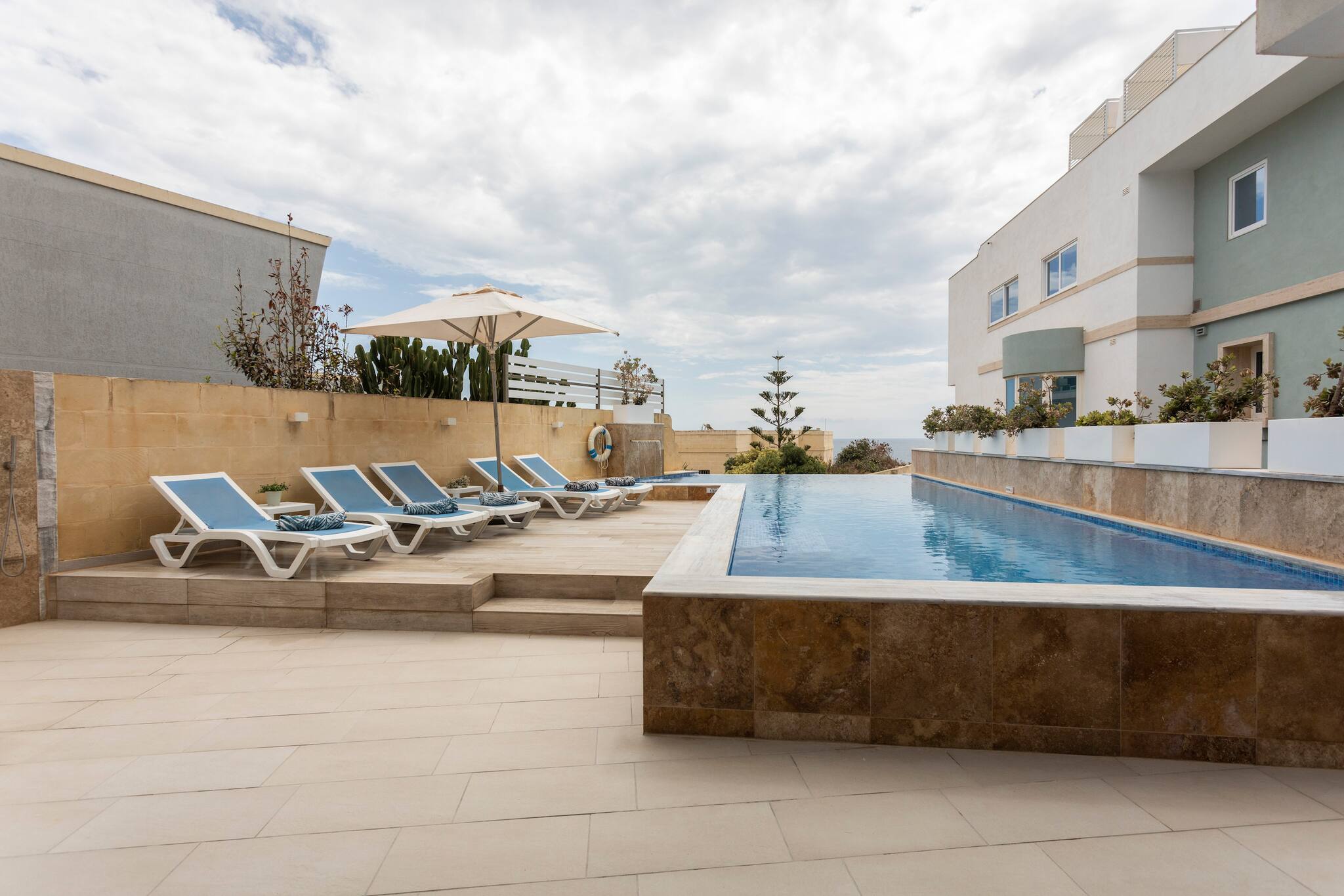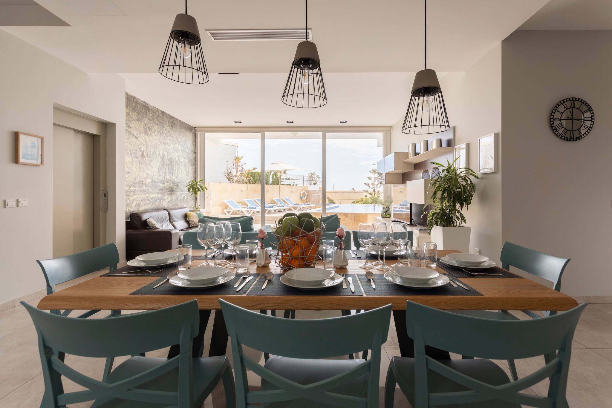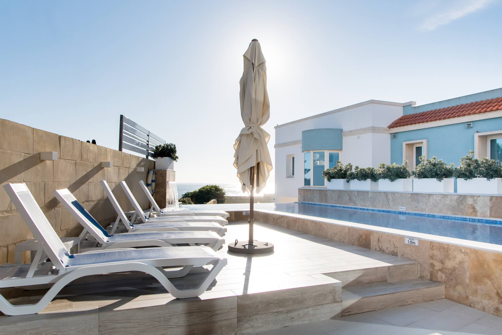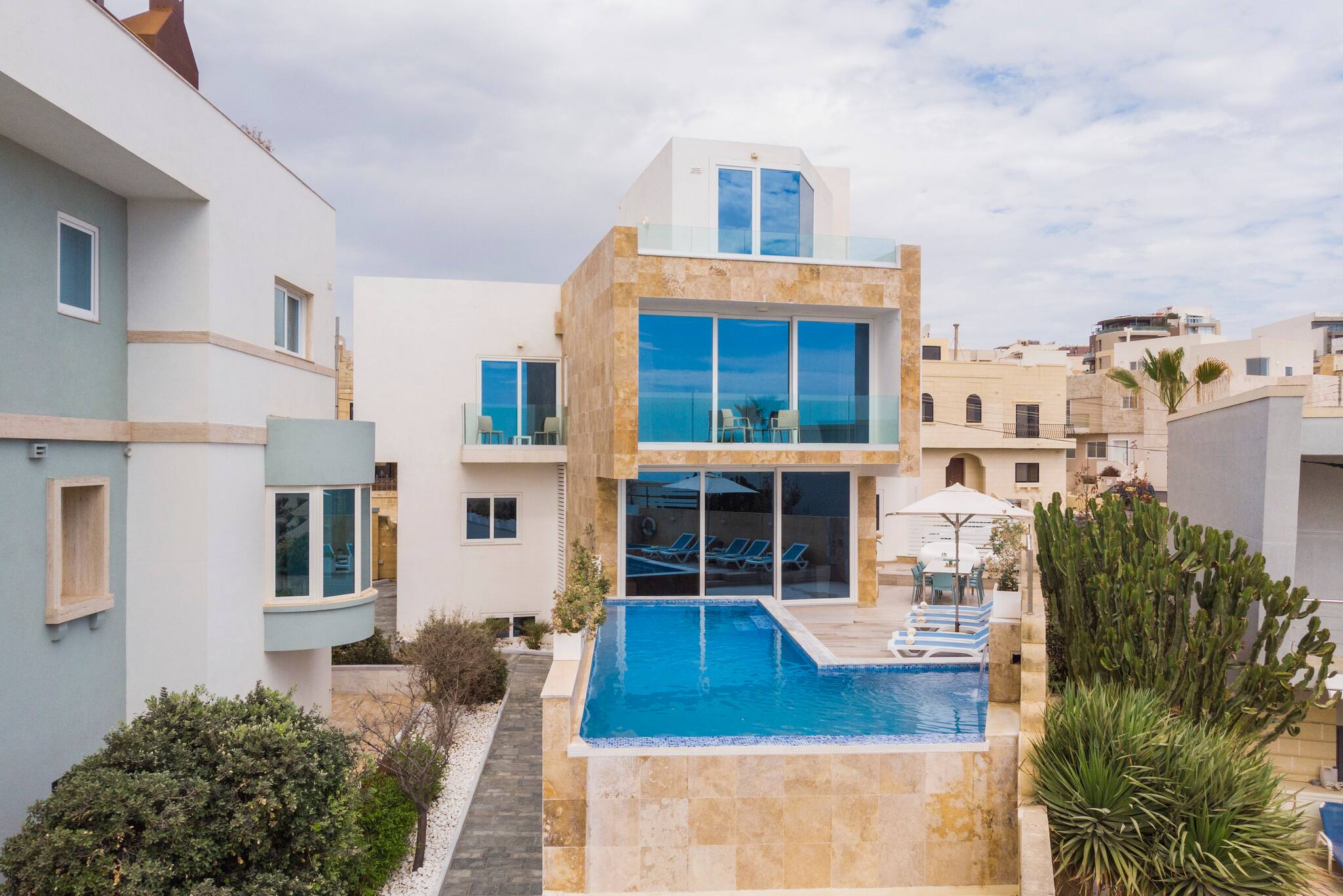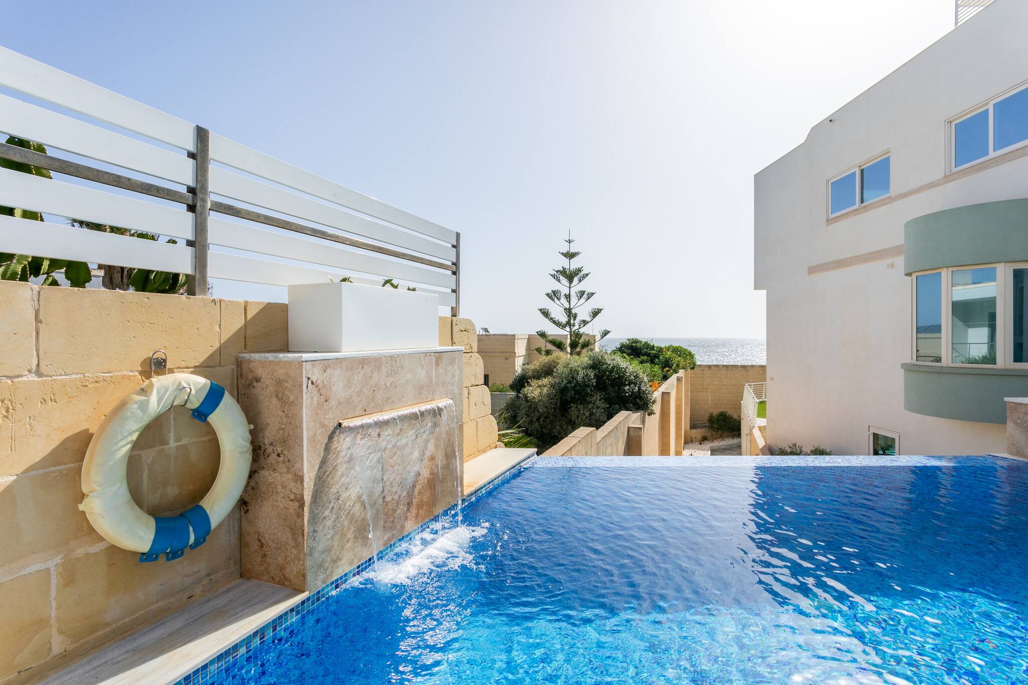 This unique property is located facing the pristine coast of Marsaskala with breathtaking views of the sea. This 7 bedroom contemporary villa has been designed around an ambitious project; a goal to create a luxury property set on a unique area with direct access to the beach. It encompasses all the necessary factors to ensure a serene and restful escape for anyone residing in it. The property is served with lift, is fully air conditioned and WIFI is offered throughout the property.